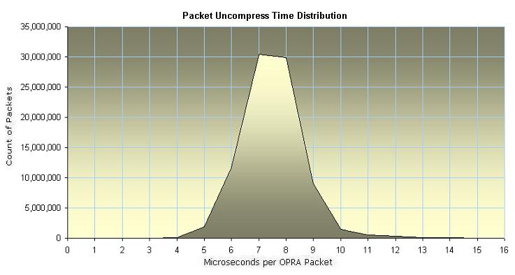 one day of OPRA packets. Note the surprisingly narrow range of timing results