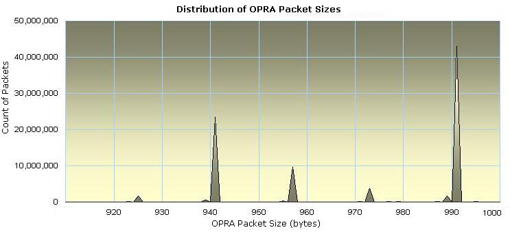 The majority of OPRA packets during trading hours are 991 bytes in length.
