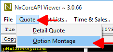 To access the Option Montage window, from API Viewer click Quote, followed by Option Montage, as seen here: