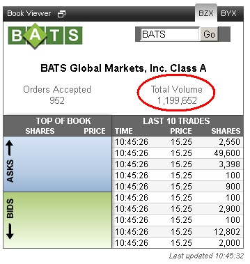 size shown on the BATS website (Total Volume circled in red) matches the size of the