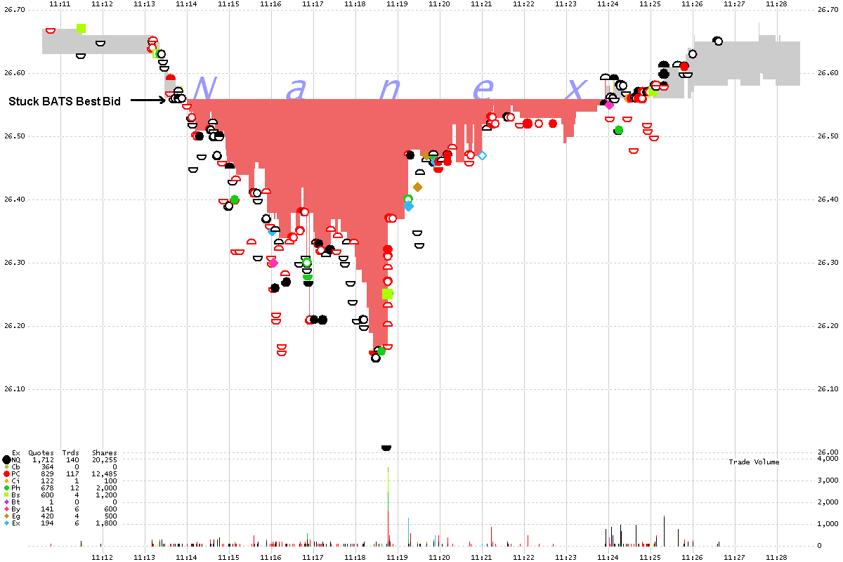 a stale quote from BATS caused the NBBO to cross severely (red shading).