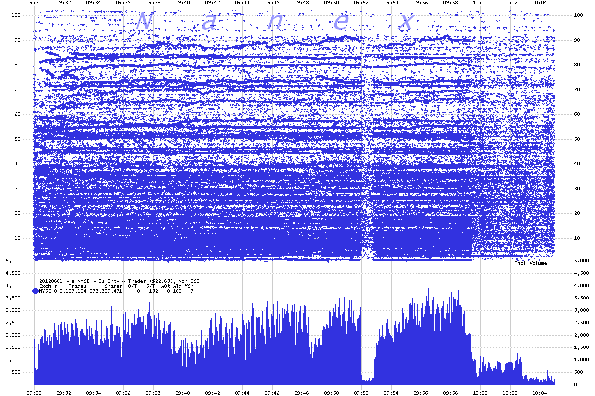 We plotted all NYSE reported trades for all NYSE listed stocks priced below $100 for