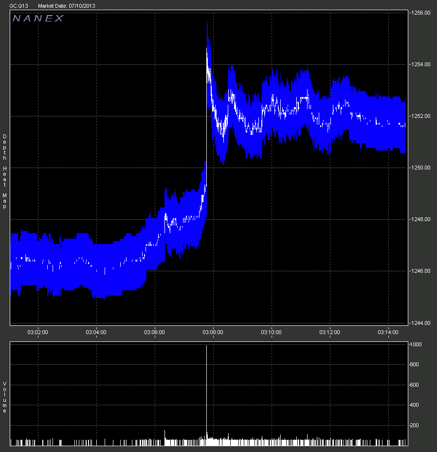 Nanex ~ 10-Jul-2013 ~ Spiking Gold