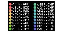 percentage change in price (bid/ask midpoint) since 7:45 for one currency pair.